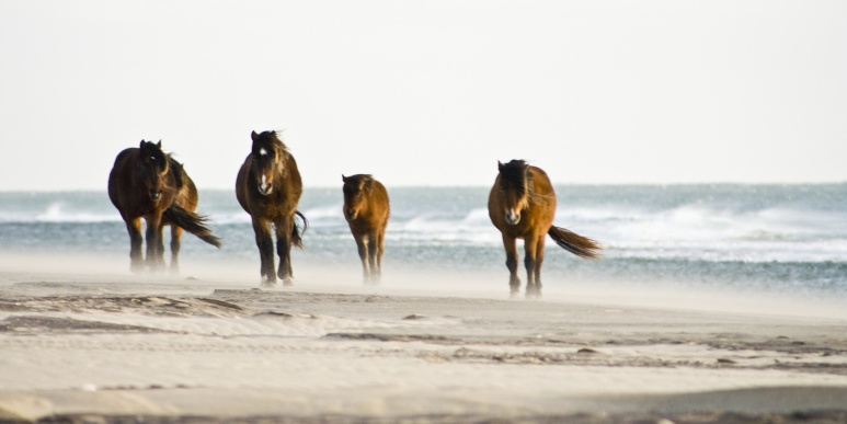 The legendary wild horses of Sable Island symbolize the will to survive in a harsh environment. Some claim that their ancestors were survivors of shipwrecks. Others believe they were left by Norsemen, or John Cabot, or Portuguese explorers, or Acadians. But they were most likely left on the island by an opportunistic Boston merchant hired to transport Acadians during the Expulsion. Scientists who have studied the horses' genetic origins say they may be distantly related to Icelandic horses. Whatever their origins, they are among the few wild horse populations left in this world.